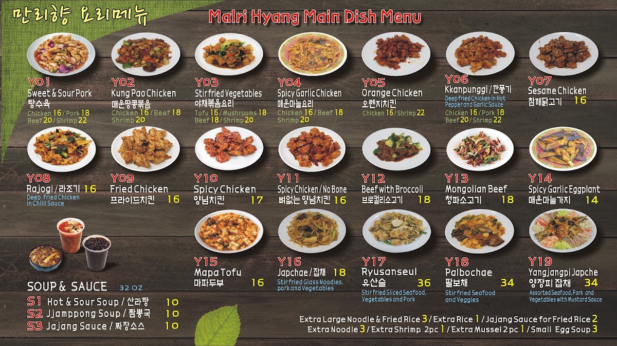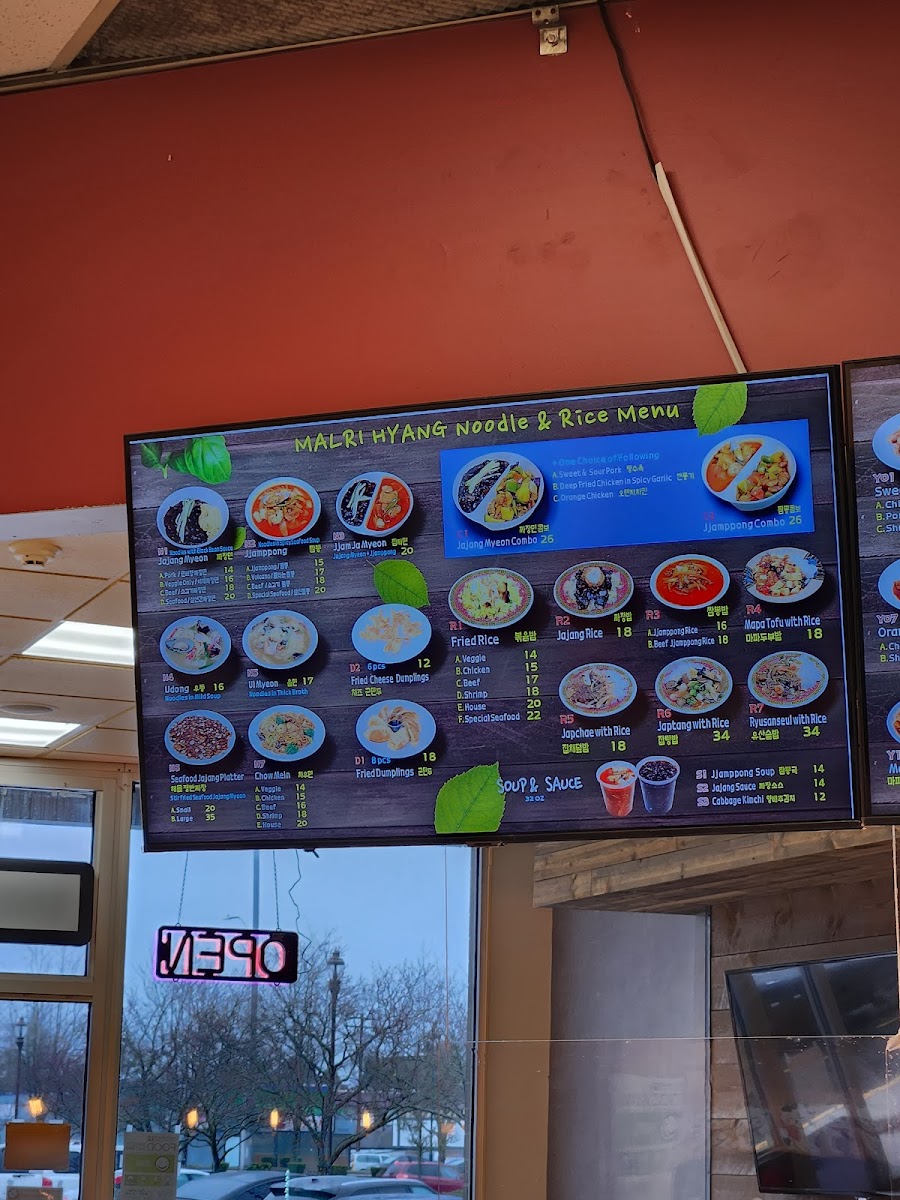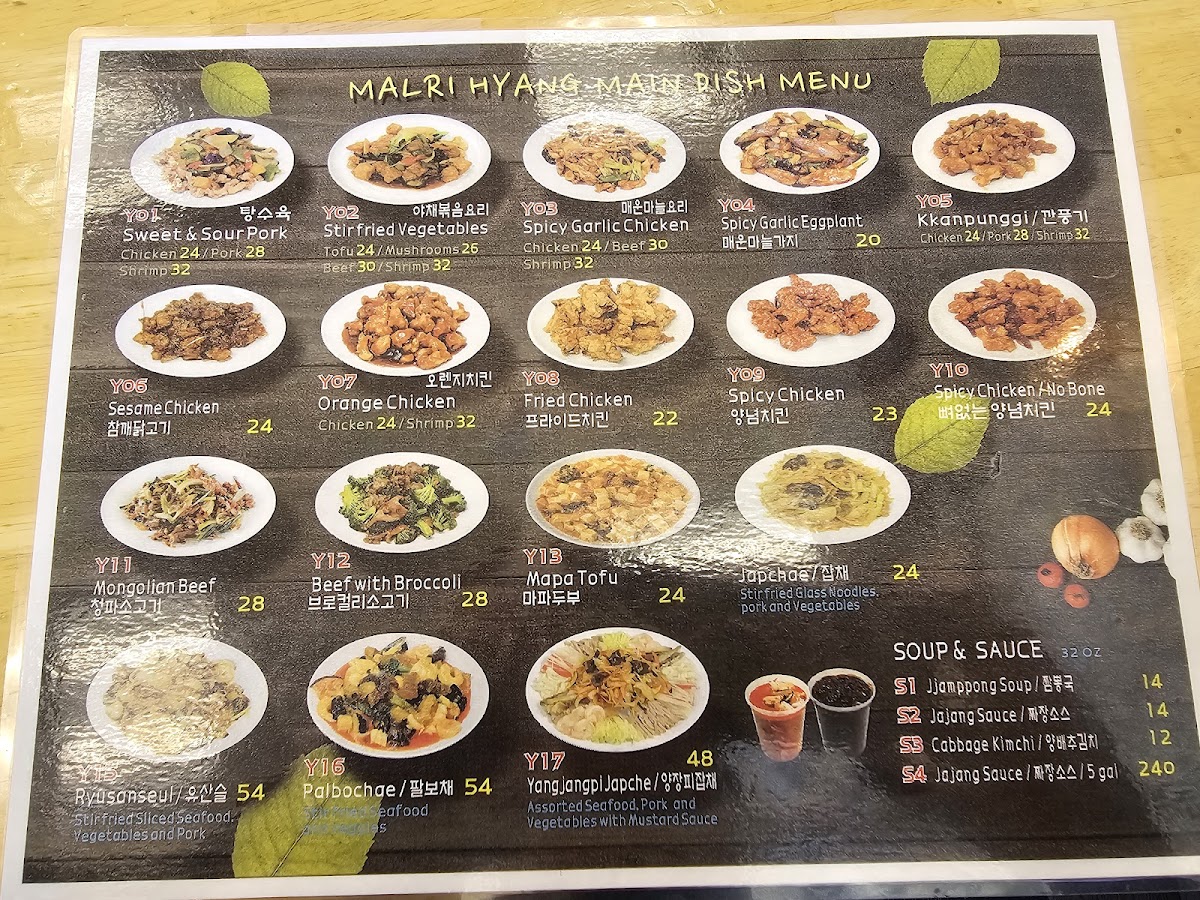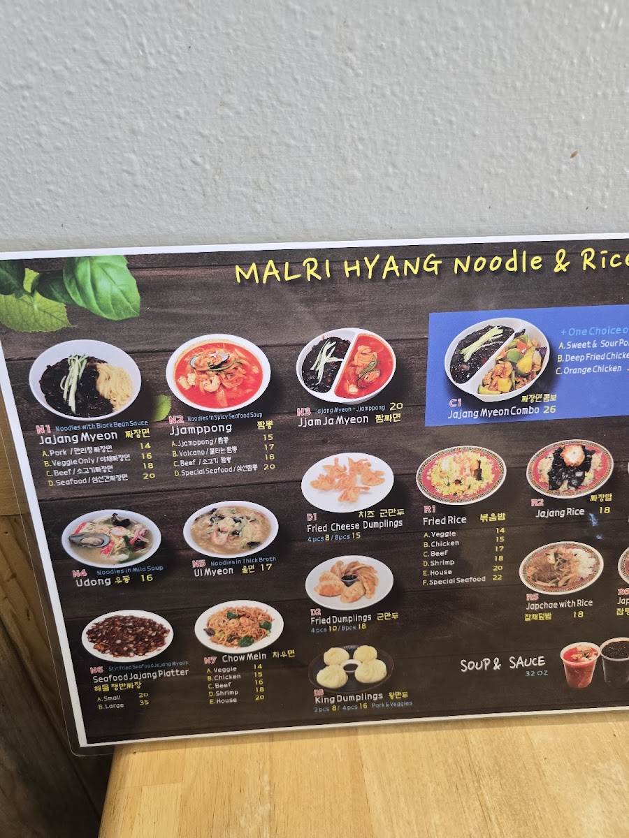 Malri Hyang offers a menu that blends Mandarin, Chinese, and Korean flavors into comforting and familiar dishes. The selection is designed for relaxed meals where you can savor a balancing act of hearty noodles, rich sauces, and warming soups. From classic combos like Jajang Myeon paired with Sweet and Sour Pork to spicy seafood noodle soups accompanied by traditional banchan, each dish invites you to enjoy both the flavors and the casual dining atmosphere.